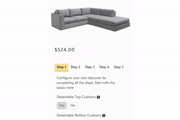 Once complete, the furniture piece in the preview should resemble yours. This is how your slipcover is going to look like in the color you choose. While it won't look like a replica of your furniture, the main elements will be there. Don't worry, the real cover will preserve the original look.