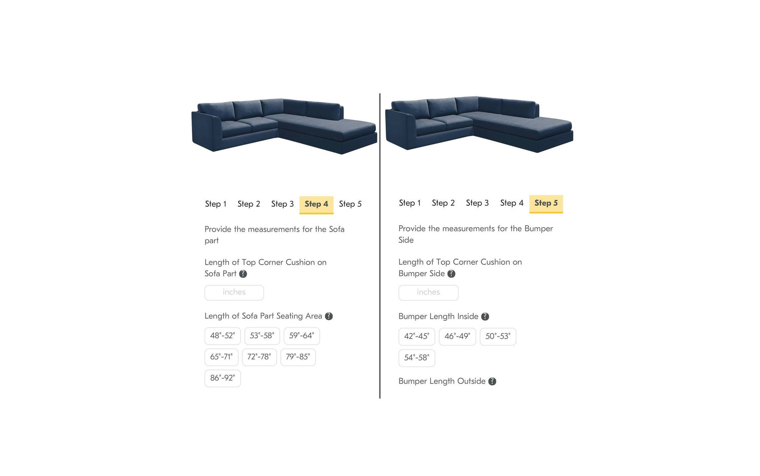 Complete the questions in the first step in less than a minute to get the preview for your furniture piece.