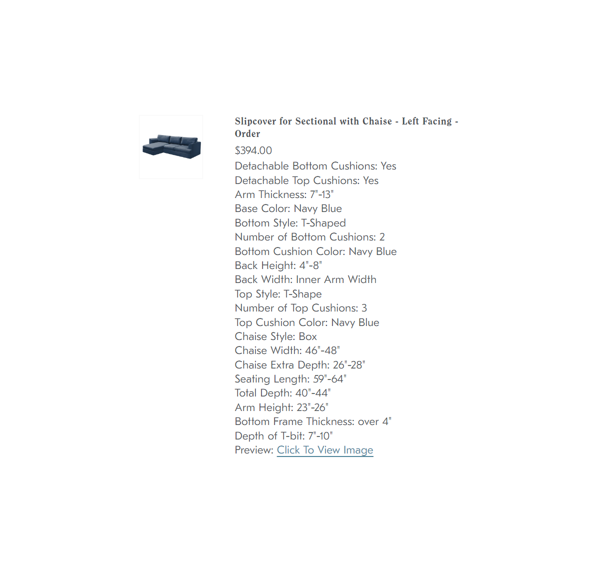 Once complete, the furniture piece in the preview should resemble yours. This is how your slipcover is going to look like in the color you choose. While it won't look like a replica of your furniture, the main elements will be there. Don't worry, the real cover will preserve the original look.